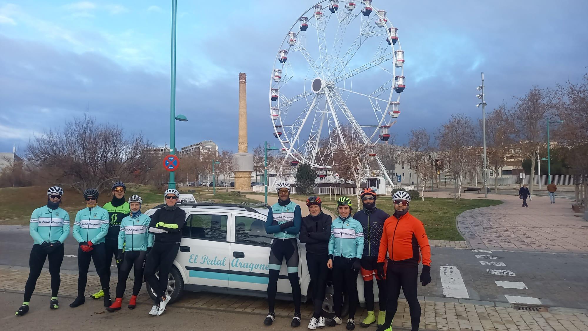 La AEMET venia anunciando durante la semana que el domingo durante la mañana llovería. ¡ Qué mala suerte! decía Alejandro en El Pedal. Y efectivamente, tras una noche lluviosa la mañana salió con el suelo mojado pero poco a poco se fue abriendo el cielo y al final la veintena larga de pedalistas que se encontraron con una segunda parte de la jornada soleada y agradable. La excursión fue a Ontinar del Salz, un enclave históricamente visitado por ciclistas tanto de Huesca como de Zaragoza. Cuando uno era juvenil- hace más de medio siglo- el entreno reiterado de los domingos era a Ontinar. La razón era muy simple: hicieron un arreglo de la carretera de Huesca que la dejaron con arcén (una novedad) y con asfalto (no alquitrán y gravilla). El resto de carreteras estaban muy por debajo en calidad hasta pasado un tiempo.